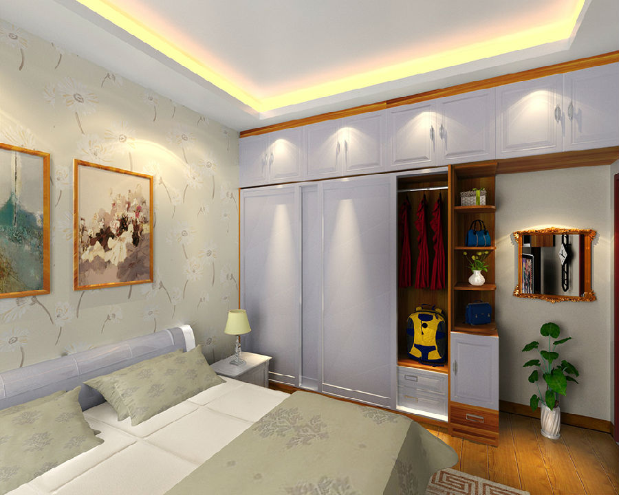 清新淡雅的莫蘭迪配色,讓整個(gè)視覺更加飽滿。純白色的衣柜顏色,讓整體布局更顯寬闊,也更具有空間感,視覺體驗(yàn)上也多了一份高雅,在燈光的照耀下,更加清新脫俗。